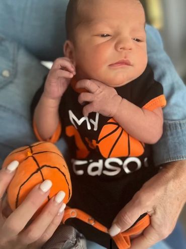 He woke up to a loving grandma who took him from 9-11, so I could get two solid hours of sleep. AMEN. His Aunt Arian came to visit him, bounced, and loved him to death! I fed him again, and then it was Papa Wade's turn! Joe also got to go to rehab today for his ankle injury, and we gave Jacob a little bath before Joe left! We dressed him up in his "my first basketball season" outfit with Jordan 11's (of course). He is just the best little angel. He is SO long and strong. He hates his arms in the swaddle and is already trying to lift himself up with his arms. I can't get over his snuggles and his smell.